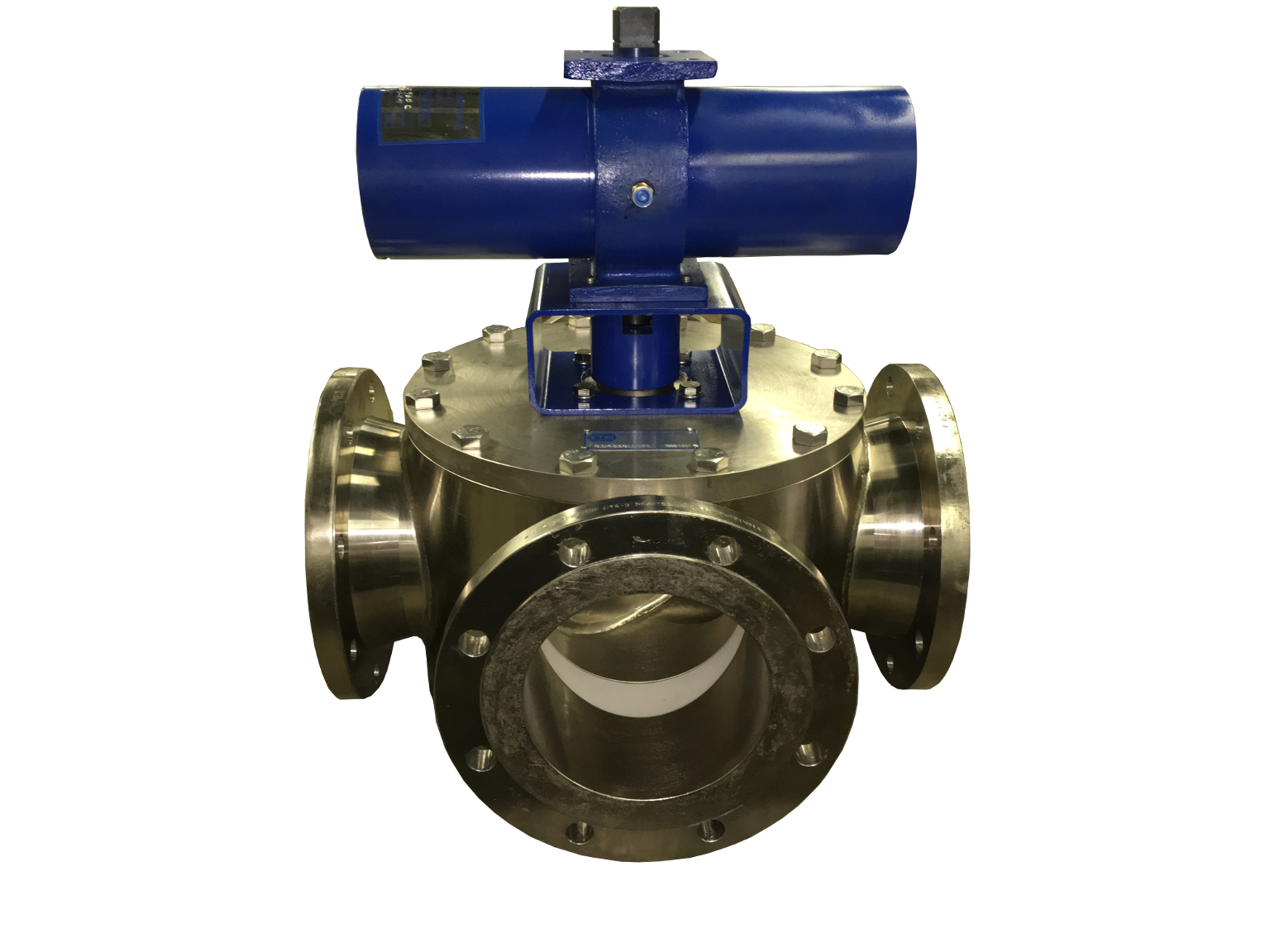 Carbon Steel w/ Nickel Plate, 8”, 4-Way, 150# Flange with QCR960 Pneumatic Actuator