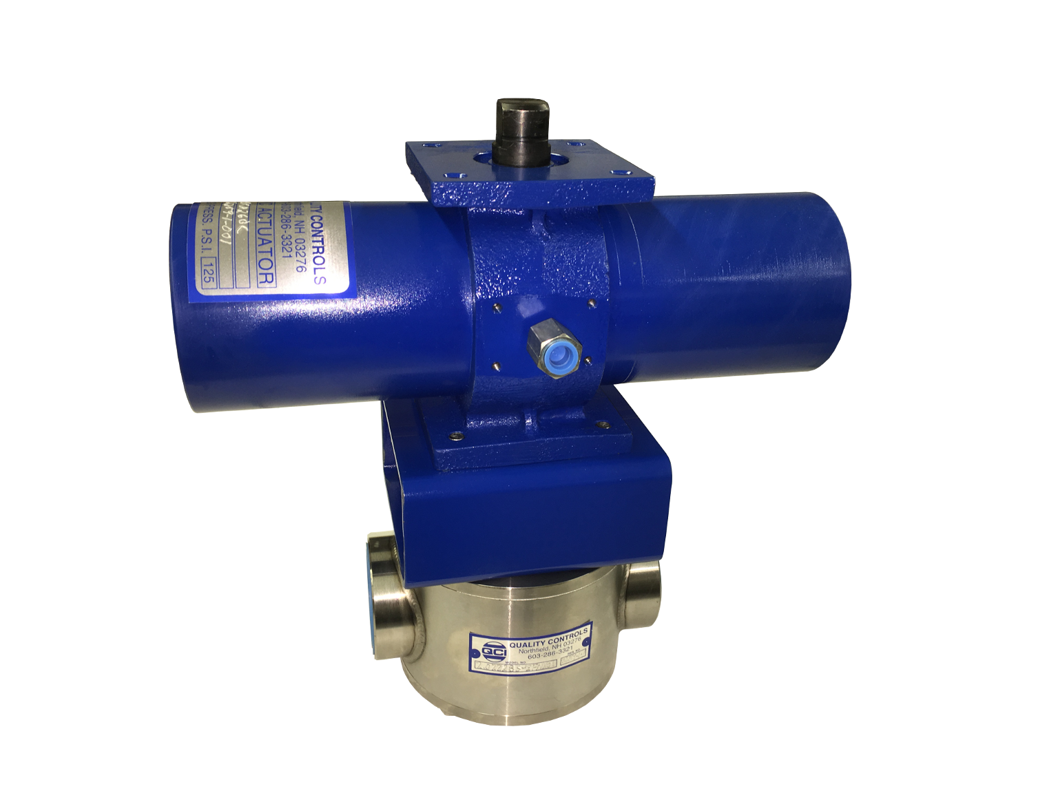 316SS, 1”, 3-Way Tri-Clamp with QCR 70 Pneumatic Actuator